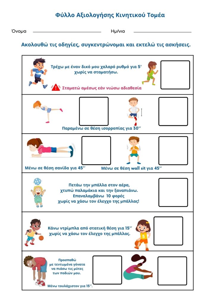 Μετά την εκτέλεση των ασκήσεων ο ΚΦΑ σημειώνει στο τετραγωνάκι την απόδοση του μαθητή με κάποιο σύμβολο, αριθμό , φατσούλα, αυτοκόλλητο κ.α. Προτιμώ για τις μικρές τάξεις τα αυτοκόλλητα…
