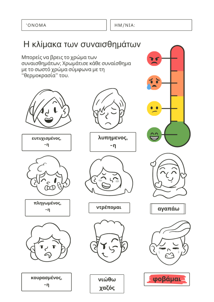 Σε αυτή τη σελίδα θα βρείτε επίση φύλλα εργασίας διαφόρων θεμάτων που σχετίζονται με τα συναισθήματα, τη συμπερίληψη, την ενσυναίσθηση και τη διαφορετικότητα.